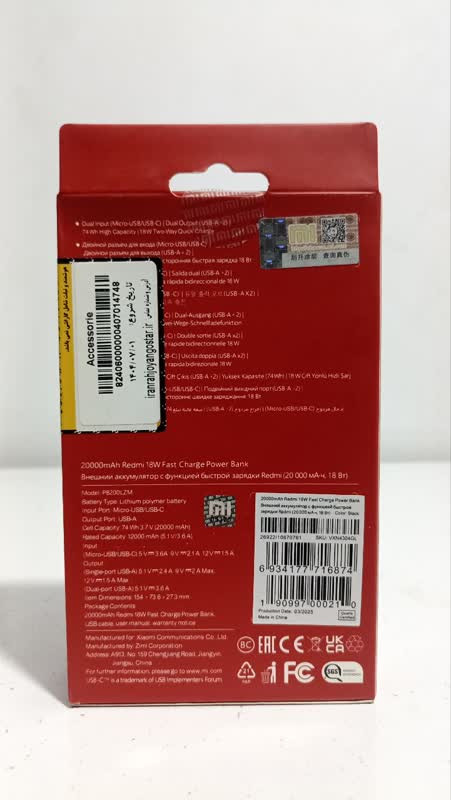 پاور بانک 20000 Redmi مدل PB200LZM ساخت شرکت شیائومی (xiaomi) است. این پاور بانک یک وسیله جانبی پرکاربرد است که نگرانی تمام شدن باتری گوشیهای هوشمند را از بین برده است. این دستگاه توانایی 4.8 مرتبه شارژ Iphone XS را دارد. Redmi 20000 با داشتن دوپورت خروجی USB و پشتیبانی از انواع پروتکلهای شارژ سریع، بهترین همراه شما در خارج از منزل، محل کار و یا هنگام سفر خواهد بود. این محصول با استفاده از سیستم شارژ هوشمند به راحتی میتواند به طور همزمان دو دیوایس شما را شارژ کند، شارژ هوشمند ورودی مناسب را برای هر دیوایس در نظر خواهد گرفت. این محصول با ابعاد 7 × 15 سانتیمتر سبک، راحت و قابلحمل است و به راحتی میتوانید انواع دیوایسهای خود مانند گوشیهای هوشمند، دوربین، تبلت و غیره را در طول روز شارژ کنید. پاور بانک همراه شیائومی دارای سیستم محافظت در برابر مشکلاتی مانند نوسانات برق، اتصال کوتاه، تغییرات دما، اضافه جریان در ورودی و خروجی و غیره است. این پاور بانک از پورت خروجی دوگانه USB_A و پورت ورودی دوگانه USB-C و MicroUSB برخوردار است. همچنین حداکثر میزان قدرت برای پورت ورودی 5V _2.1A و پورت خروجی آن 5.1V_3.6A است. این دستگاه دارای دو درگاه ورودی MicroUSB - TypeC برای شارژ است و قابلیت سازگاری با تمامی گجت های هوشمند شما را دارد. در مجموع این پاور بانک با توانایی چندین بار شارژ گوشیهای هوشمند، میتواند یک انتخاب مناسب برای استفاده روزمره باشد.